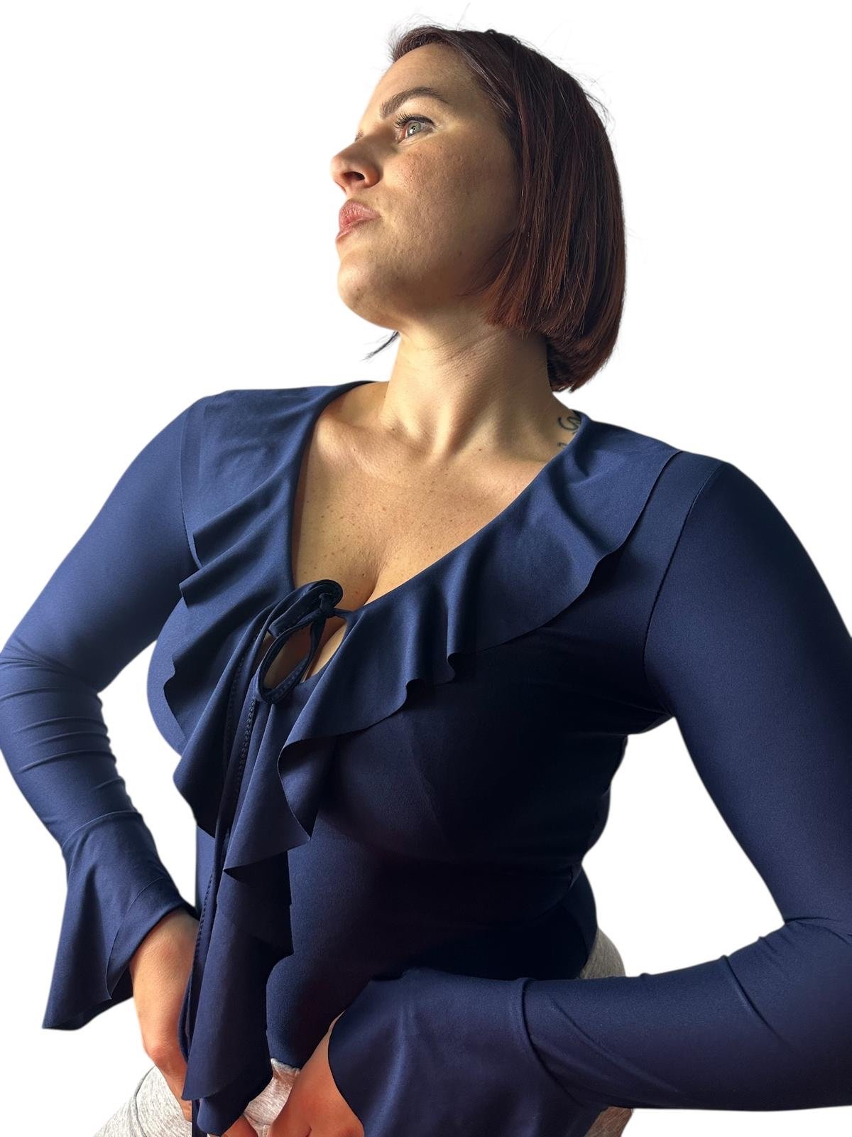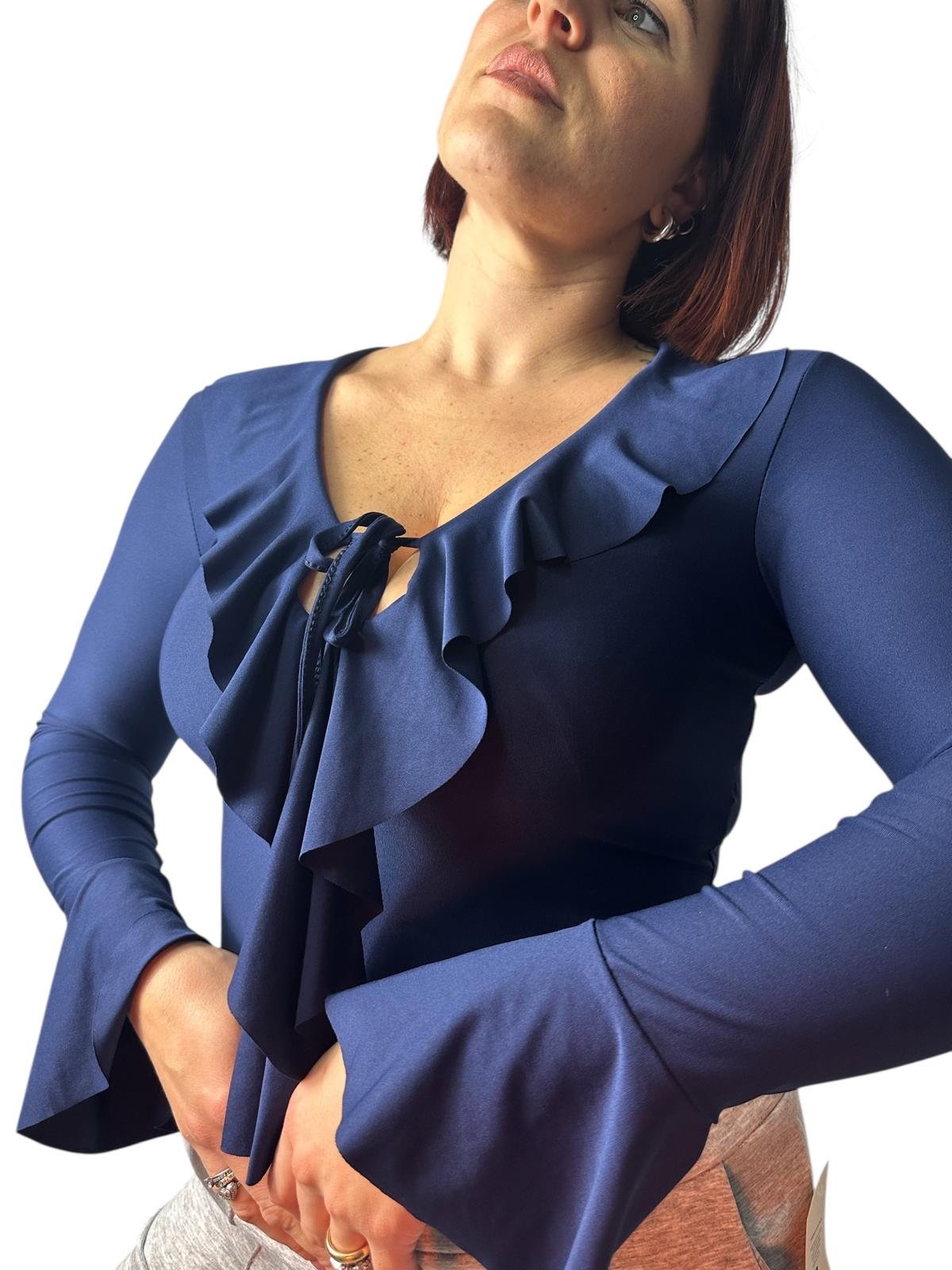 Body Elegante con Balze e Maniche a Campana – Scollo a V