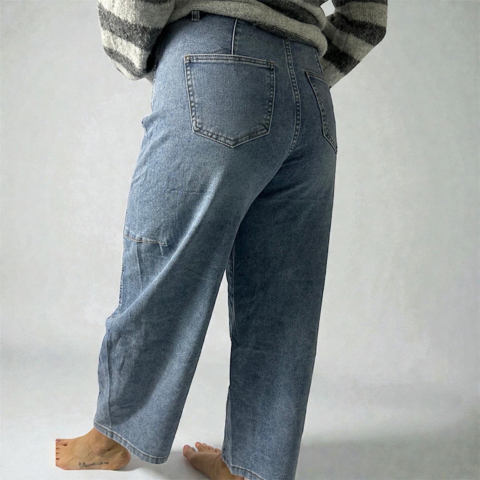 Il lavaggio blu chiaro vintage conferisce un look autentico e vissuto, facile da abbinare per outfit casual o più ricercati. La vita alta slancia la figura, mentre la lunghezza cropped (sopra la caviglia) li rende perfetti per mettere in risalto sneakers o stivaletti.