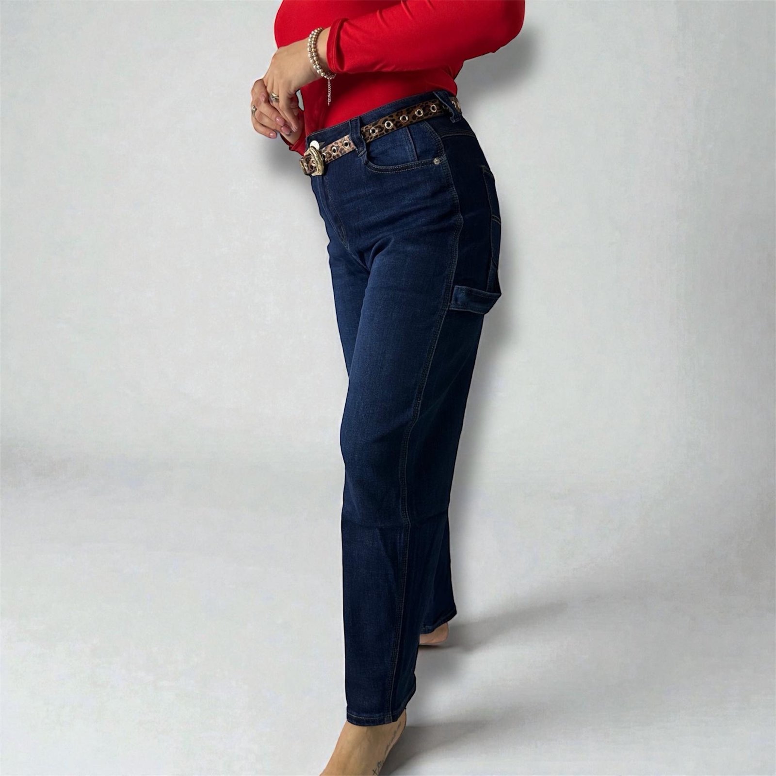 Comfort del Mom Fit con taglio dritto moderno e denim lavaggio scuro. Abbinalo a un body cut-out e una catena in vita per un tocco glam immediato. Non perdertelo!