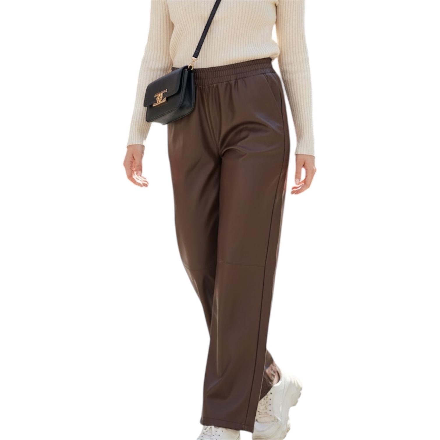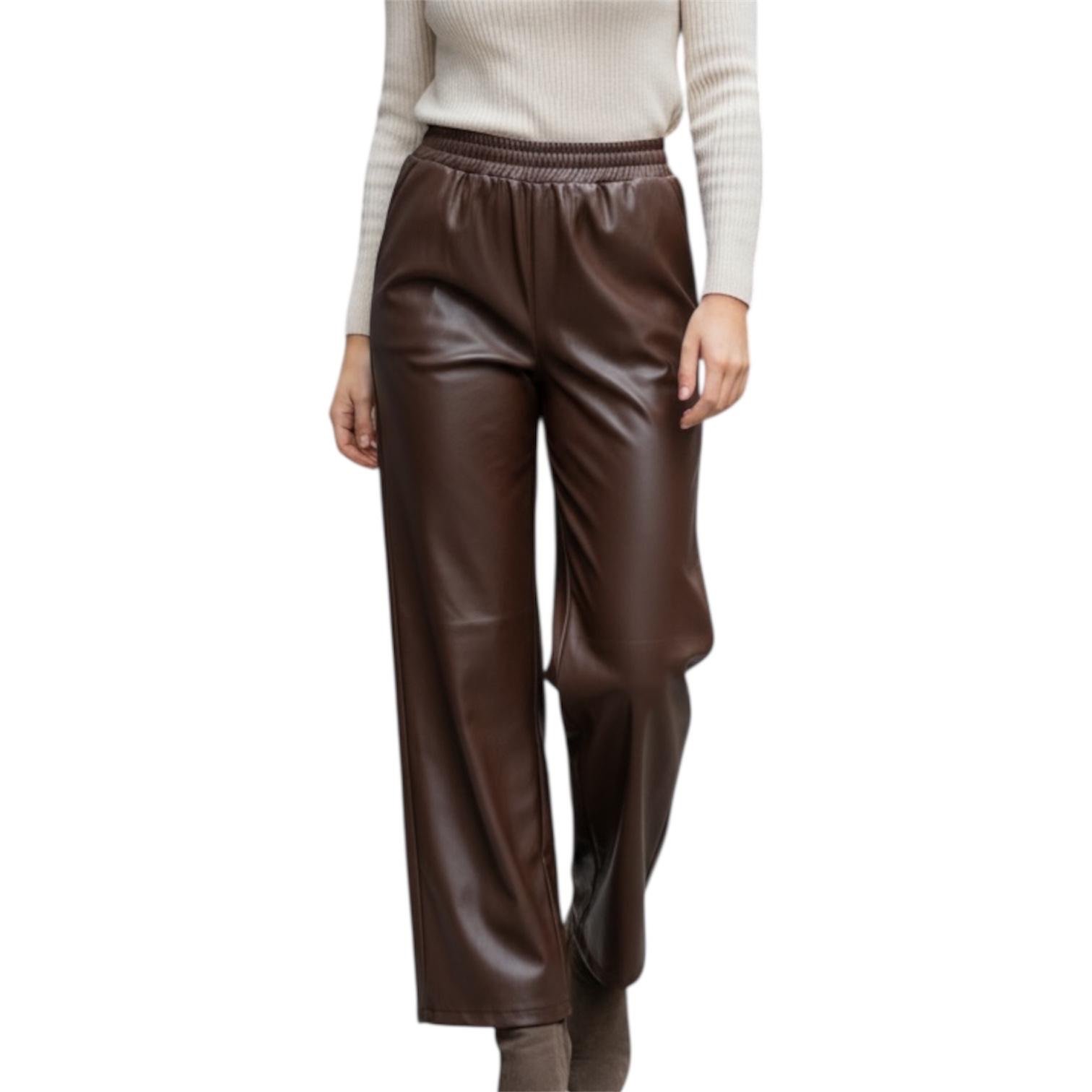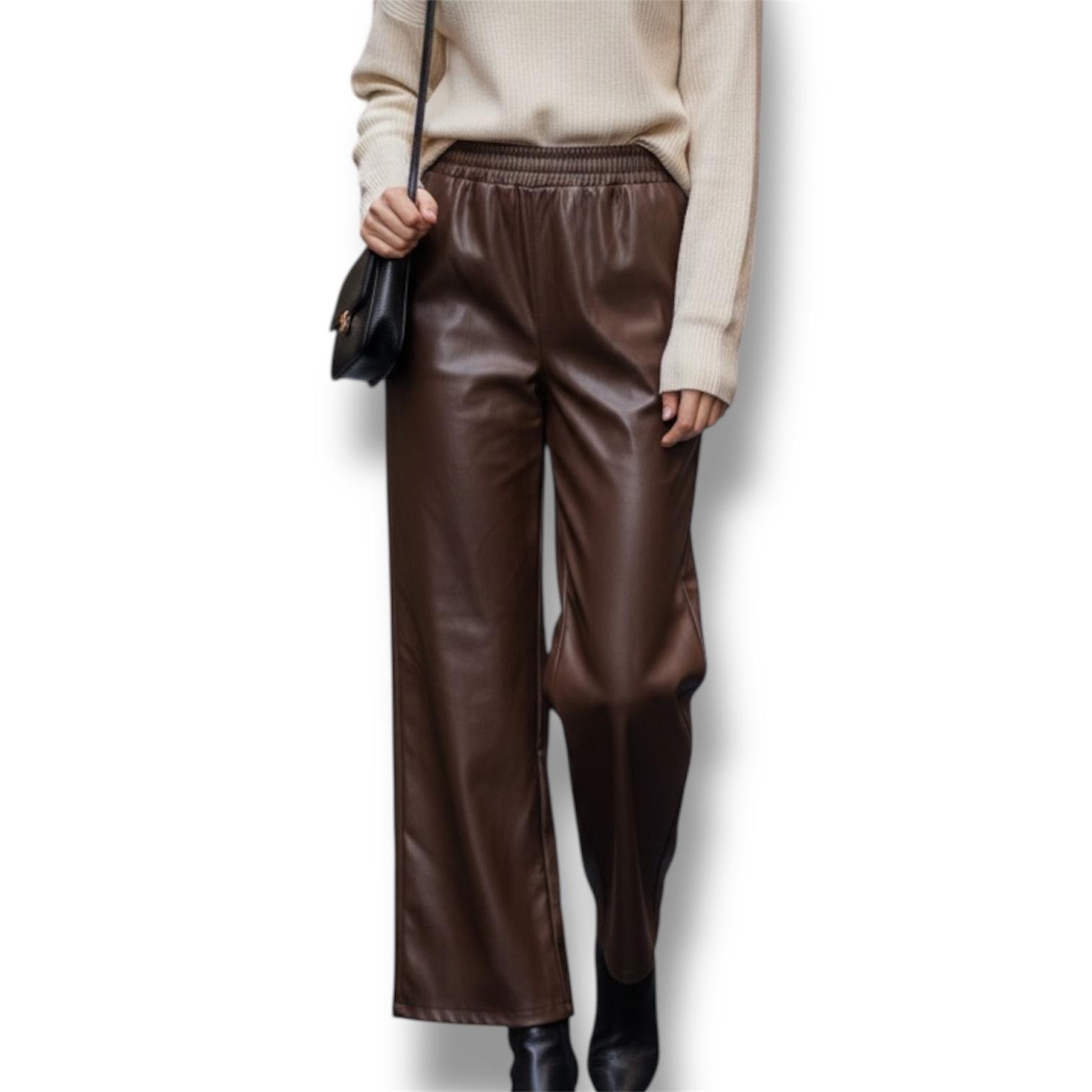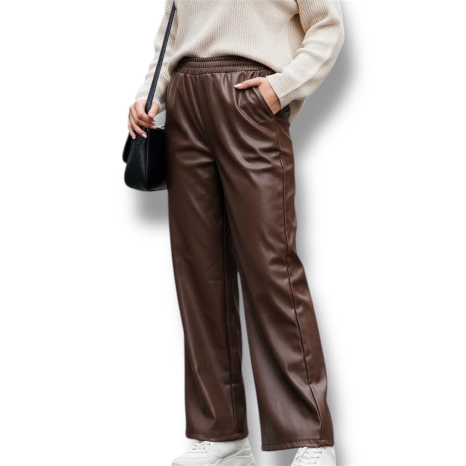 Aggiungi un tocco di stile al tuo guardaroba con i nostri Pantaloni Ecopelle a Gamba Larga (Wide Leg). Dotati di una vita elasticizzata per il massimo comfort e un look trendy, sono perfetti sia per un outfit casual che per occasioni più eleganti.